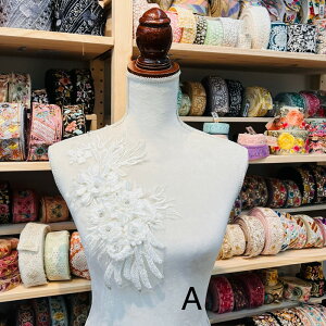 ゴージャスなモチーフを入荷しました。 こちらのモチーフ、ビーズをあしらい、キラキラと輝く立体的な花のモチーフです。 カラーは白と黒の2色。 落ち着いたカラーの中に情熱を感じるデザインとなっております。 舞台衣装にはもちろん