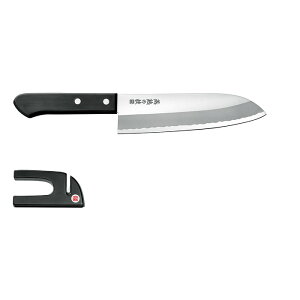サイズ・重量: [三徳包丁]全長約290mm(刃渡り約165mm)、約175g [シャープナー]約110×35×25mm、約25g 材質 [三徳包丁] 刀身/ステンレス刃...