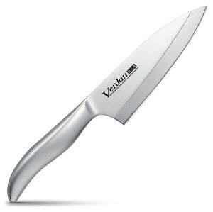 商品(左): 「ヴェルダン 三徳包丁」は、清潔なオールステンレス製です。 商品(左): 切れ味がいいのはもちろん、ハンドルと刀身の継ぎ目がなめらかなので、 汚れをスッと拭き取れ、お手入れが簡単にできます...