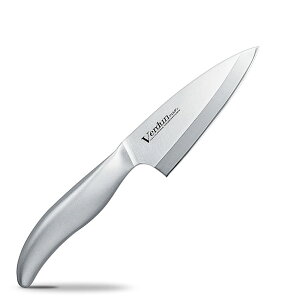 鋭い切れ味と切離れを生み出す水砥刃付け 高硬度、永切れ、研ぎやすさを併せ持つVG10三層鋼を使用 本職の技にこたえる重量設計 手にやさしい曲線形状 本体サイズ:W49×D59×H195mm 本体重量:110g 生産国:日本 耐熱温度:...