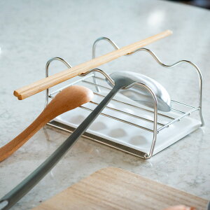 「キッチンマルチスタンド」は、料理中の置き場に困るお玉や鍋蓋などのキッチンツールをサッと置けて、サッと使えるスタンドです。引っ掛けやすさ、立てかけやすさを追求した波々ワイヤーと波々トレイがツールをしっかりキャッチ。立