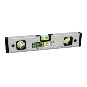 【商品説明】●気泡管は日本製です。●見やすい拡大レンズと配管測定に便利なV溝付です。●6本線気泡管で、1/100勾配、2/100勾配が測定できます。●衝撃に強いプロテクタ付です。●軽くて持ちやすいアルミニウム製です。●両面目盛付で
