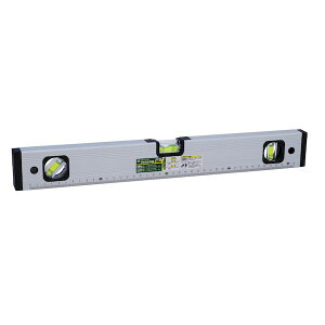 【商品説明】●気泡管は日本製です。●見やすい拡大レンズと配管測定に便利なV溝付です。●6本線気泡管で、1/100勾配、2/100勾配が測定できます。●衝撃に強いプロテクタ付です。●軽くて持ちやすいアルミニウム製です。●両面目盛付で
