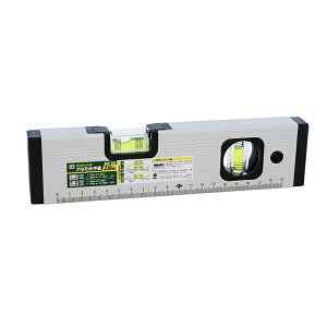 【特徴】●気泡管は日本製です。●見やすい拡大レンズと配管測定に便利なV溝付です。●6本線気泡管で、1/100勾配、2/100勾配が測定できます。●衝撃に強いプロテクタ付です。●軽くて持ちやすいアルミニウム製です。●両面目盛付です。●
