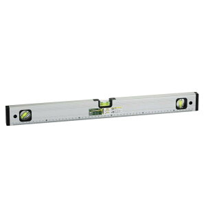 【商品説明】●気泡管は日本製です。●見やすい拡大レンズと配管測定に便利なV溝付です。●6本線気泡管で、1/100勾配、2/100勾配が測定できます。●衝撃に強いプロテクタ付です。●軽くて持ちやすいアルミニウム製です。●両面目盛付で