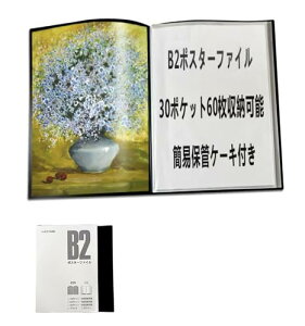◆商品名:LUCKYSHIN B2 ポスターファイル 60枚収納 30ポケット クリアファイル B3 A4 ポスター 40枚 20枚 ポスターフレーム ポスターケース 収納ケース付き 大きいサイズ 作品 新聞 保管 収納 鑑賞...