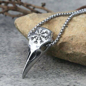 商品名ビンテージ ステンレス スチール オーディン カラス スカル ネックレス ペンダント メンズ バイキング 方位磁針 チェーン ファッション スカル ス