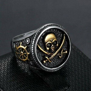 シグネット スカル 指輪 リング メンズ ゴールド シルバー ビンテージ ステンレス スチール 方位磁針 バイキング海賊 パイレー