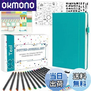 Feela ドットグリッドジャーナルハードカバープランナーノートブックセット 初心者 女性 女の子 ノート ジャーナリング用品 ステンシルステッカー ペンアクセサリー、A5、224ページ、ティー