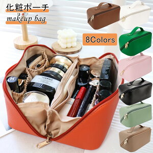 商品説明 旅行先や普段使いに、持ち手がついて大容量のコスメポーチです。ファスナーが全開する広口タイプで取出しやすい。 カラーは選べる8種類。 大容量で大開口、大きく開くので使いやすい。 お洒落も兼ね備えたコスメポーチです。