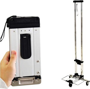 広げれば、9cmを超えるキャリーになるので、車などに積んでおくのも非常に便利。 折り畳み式のキャリーカート。A4サイズより小さくコンパクトに持ち運び可能。 フック付きゴム紐なども付属。 素材: ポリウレタン...