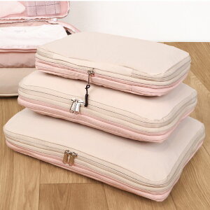 3個セット 説明 ◇ ● 衣類を入れファスナーを閉じるだけで、衣類の体積を約50%に簡単に圧縮できる圧縮袋の3個セットです。 ● バッグやスーツケース内のスペースを節約できるので、旅行や出張などに便利。家庭