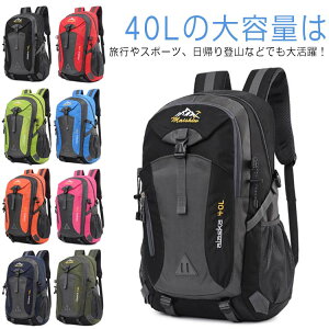 40Lの大容量は旅行やスポーツ、日帰り登山などでも大活躍!耐久性が強く丈夫なナイロン素材を使用。表生地には撥水加工を施しているので、雨の日でも気軽に使えてお手入れも楽ちん。リュックフロントにファスナーポケット2個が付いてい
