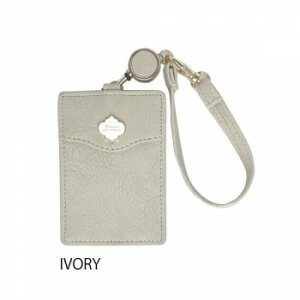 背面は定期やICカードを収納する窓付きのクリアポケット。伸びるリール付きなので、バッグに付けたままぴ〜っと伸ばして、改札にぴっと出来て便利です。リールは最大約38cm伸びます。※ご使用されている機種・ディスプレイにより、実際