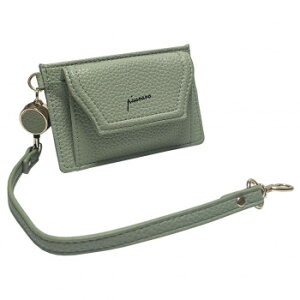 透明窓が付いているので、定期や社員証などの収納に適しています。ナスカンとホック付きストラップは着脱可能です。内側にはキーリングが付いているため、鍵の収納も可能。整理しやすい仕切りポケット付きです。サイズ約H7.8×W12cm、ス