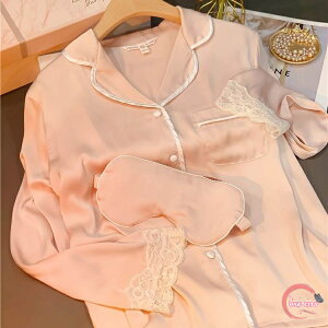 長袖パジャマとアイマスクのセットです。ピンクのサテン地にレースが可愛いデザイン♪お家ではもちろん、旅行やお泊まりにもおすすめです!【カラー】ピンク【サイズ】S着丈:58cm肩幅:40cm胸囲:100c...