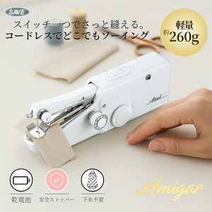 送料無料 (沖縄・離島は別途) 電動ハンドミシン アミーガー|コードレスでサッと縫える簡単ハンドミシン ボタンひとつで手軽に使える電動ハンドミシン「アミーガー」。 コードレス仕様で、外出先や旅行中のちょっとしたほつれ直しにも