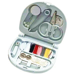 お裁縫セットには指ぬき*1、ハサミ*1、待ち針*2、安全ピン*1、予備ボタン*3、メジャー*1、糸通し*2、ぬい針ケース*1、縫い糸*12色(ランダムカラー)、収納バック*1などが含まれており、基本の裁縫道具が揃っています...