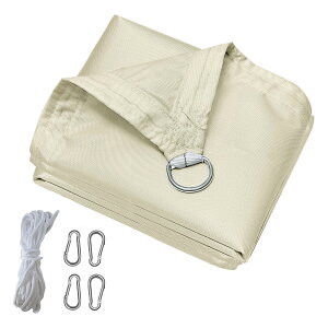 【防水サンシェード】高密度の160GSM/400Dポリエステル素材を採用。撥水レベル4級、紫外線に強く、色褪せしにくい。突然の雨にも大丈夫で傘のように雨水を弾くので、四隅のコーナーに強度UP錆びないDリングを使って、縁面にダブルステッチ