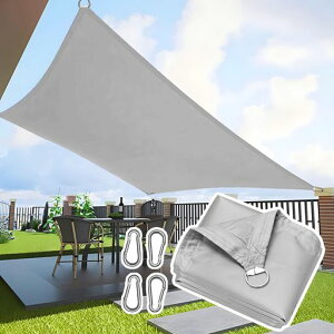 日除けシェード グレー 雨よけ 遮光ネット 屋外 庭 ベランダ 目隠し 401Dポリエステル タープ 簡単設置 四隅にはD型メタルバックルが付属【防水サンシェード】高密度の160G S M/400Dポリエ...