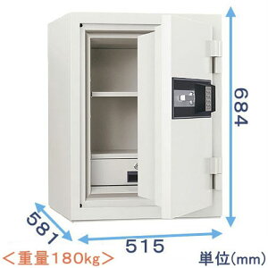 テンキーによる暗証番号と鍵で、扉を開閉するタイプの耐火金庫です。 一般的な耐火金庫に比べ、工具による金庫破壊に対する強さが強化されています。 A4用紙が入った角2封筒(寸法:332mm×240mm)を、折らずにそのまま収納できるゆとり...