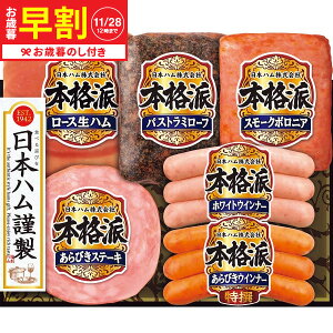 ■商品紹介:どなたにも喜ばれるハムギフトです。食卓に多彩なおいしさを広げます。 ■商品内容:本格派(ロースハム160g・ペッパーボロニア105g・焼豚140g・あらびきミートローフ128g各1本・特撰あらびきウインナー66g・ロース生...