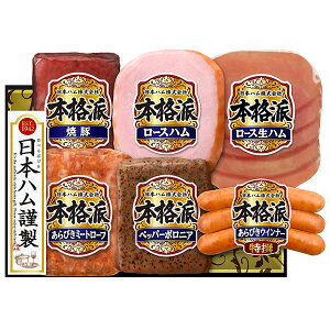 本格派ギフト 長年愛されつづけてきたハムギフトの自信作です。食卓に多彩なおいしさを広げます。 ■内容量:ロースハム160g・スモークボロニア105g・直火焼き焼豚152g・ロース生ハム27g・特...