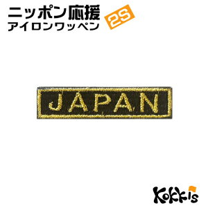 JAPAN(ジャパン)のアイロン・ワッペン Sサイズの国旗ワッペンとほぼ同じ幅です。 仕様: ■サイズ 約15mmx65mm ■素材 ポリエステル・レーヨン ■日本製 ■アイロン対応 ※よく洗濯するもの、熱に弱い素材、毛足の長いものに...
