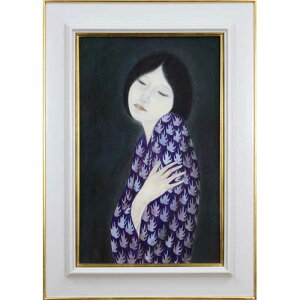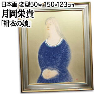 高貴な紺青のドレスに身を包んだ清楚な女性共シール付技法:日本画作品サイズ:変型50号額のサイズ:高さ150cm×幅123cm×奥行き7.0cm作品の状態:良好です。額には若干のキズがあります。月岡榮貴(つきおかえいき...