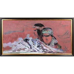 雪の積もった山とアイヌ民族をモチーフにした日本画画寸:50×100cm技法:日本画作品サイズ:変型40号額のサイズ:高さ56cm×幅106cm×奥行き6.0cm作品の状態:良好です川井坦(かわいひろし...