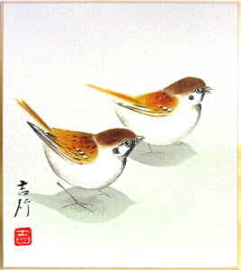 ■すみれに雀 愛らしい姿でひっそりと春の訪れを 告げるすみれの花。 ふっくらとした雀の姿もかわいらしく 春のやわらかな日差しを感じるような 素敵な作品です。 画像と同じ構図の作品をお届けします...