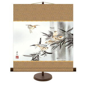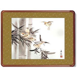 『竹に雀』 西尾香悦驚異の生命力を持つ竹に集う愛らしい小雀松竹梅として最吉祥の木「歳寒の三友」の一つである竹に、元気よい愛らしい子雀の群れが集う活力あふれる名構図です。●寸法(約)幅63×高さ48cm...