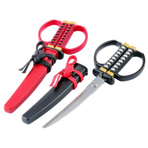 ハンドル:ABS 種類/ブラック、レッド 生産国/日本製 ●日本刀をモチーフにした美しい刃紋入りの日本刀はさみです。 ●刃物の町、岐阜県関市の刃物職人が1本1本丁寧に刃付けをしています...