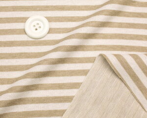 ボーダー間隔 9ミリ 特徴 エステルの染め糸とコットンのオフ糸で編んだボーダー柄のジャージニット 色糸に干渉されてオフ糸が淡い色合いに変化して