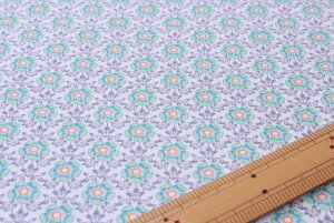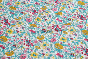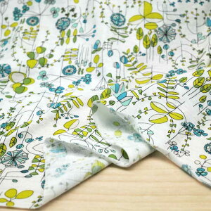 素材 コットン100% 生地幅 150cm 厚み 0.4mm厚 伸縮性 1.2倍程度 特徴 ナチュラルな風合いのコットンの細い60/糸でふんわり編んだ軽い天竺ニットに 可愛いbotanicalな 花とリーフの北欧風なデ...