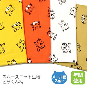 サイズ 105cm巾 販売単位 50cm単位 品質 綿100% 生地の厚さ テンション オリジナルカラーに染色したスムースに とらくん柄をプリントしました。 スタンダードなとらくんカラーを揃えてみました。 同時発売のしましま柄と良...