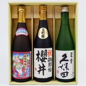 日本酒 越乃寒梅 灑 純米吟醸 越後鶴亀 招福神 純米吟醸と高野酒造 大吟醸酒名前入れ720ml×3本 プレゼントギフトセット。