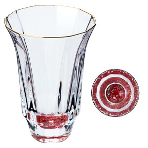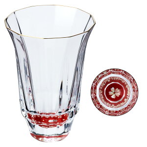 高岡漆器 螺鈿硝子 金杯(万華鏡) 桜・朱 容量60ml 日本酒 冷酒グラス 漆塗りガラス 化粧箱入り 富山県伝統工芸品