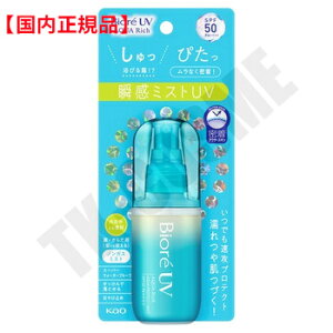 【商品の説明】「しゅっぴたっ」「しゅっ」とすると浴びる霧のようなミストが、素早く乾いて「ぴたっ」とムラなく密着。いつでもどこでも全身速攻プロテクト!瞬感ミストUV。ノンガスミストタイプ。外出中でもサッとUV対策できて便利。