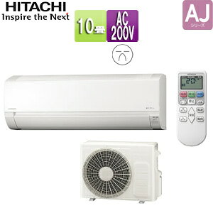 日立 ルームエアコン 「白くまくん AJシリーズ」 主に10畳用(8畳-12畳用) 25年モデル 家庭用エアコン 冷房 暖房 除湿 RAS-AJ2825S-W。室内機、室外機、リモコン。