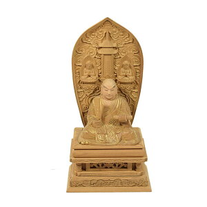 日蓮聖人像 楠 2,0 切金(プラチナ箔/本金箔) 【仏像】[日蓮宗][仏壇 仏具 日蓮] 材質/楠 総高/約13.5センチ 幅/約10センチ 奥行/約7センチ 身丈/約7センチ