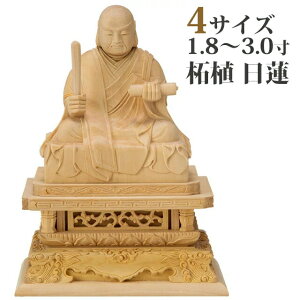 寸法:高さ13cm×巾11cm×奥行7.8cm 身丈 2寸(6cm)材質:柘植(つげ)製日蓮聖人は日蓮宗の開祖(祖師)ご本尊です。日蓮宗のご本尊曼荼羅掛軸の前に安置します。