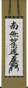「妙法蓮華経」とは法華経を指します。 「法華経の教えに帰依する」という意味です。 主に日蓮宗(緒派含む)でお唱えします。国内表装・肉筆画。...