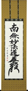 シリーズ仏事飾りモチーフ日蓮名号 清らかな書に深い仏徳がこめられた有難い御名号。 日常掛として日々念仏を唱えていただきたい流麗な書体に日蓮上人の地合いが心に染み入る逸品です。仕様洛西緞子本表装 軸先:陶器 ※化粧箱収納生産