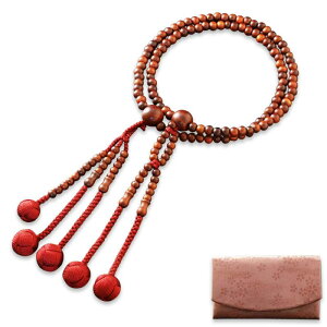 エンジ色/箱:桐箱入り/セット品:数珠袋(清滝 灰桜色 16cm×8cm) 宗派:日蓮宗用 女性向け あずきのようにやや紫がかった濃い茶色の紫檀の玉に深みのあるエンジ色の梵天房をアレンジした日蓮宗女性用のお数珠です。京都の...