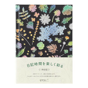 【ネコポス便対応可能商品】 丁寧な暮らしの日記時間 柔らかく手馴染みのよい表紙とともに、ゆったりとその日を振り返る日記。 2日で1ページ、384日分使えます。 華やかな挿絵が、日記時間にアクセントを添えてくれます。 日付なしの日記