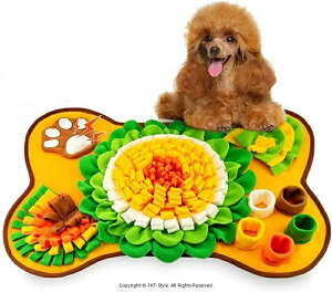 ノーズワークマットはワンちゃんの嗅覚、注意力のトレーニングが出来る知育玩具です。マットにワンちゃんの大好きな食べ物を隠し、ワンちゃんに食べ物を探しに行かせます。これにより、ワンちゃんの食事速度が低下し、ワンちゃんの嗅