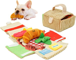 【コンパクト&持ち運び便利】 ボックスサイズ:お出かけや旅行時にもコンパクトに収納でき、持ち運びラクラク♪ 【音が鳴る楽しい仕掛け】 チーズプレート:取り外し可能&カサカサ音でワンちゃんの好奇心を刺激! クロワッサン:内部