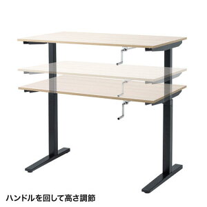 【商品説明】●ハンドルを回して、デスク天板を上下させる昇降デスクで、電源のとれない場所でも使うことができます。●昇降範囲は715〜1125mmです。●操作しない時のハンドルは、邪魔にならないようにデスク内部に折りたたむことができ