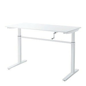 ハンドルで高さを調整でき、手軽に使える昇降デスク。幅1400mm×奥行き700mm。ホワイト。※箱にキズ、汚れがありますが商品は新品です。<特長>●ハンドルを回して、デスク天板を上下させる昇降デスクで、電源のとれない場所でも使うこと